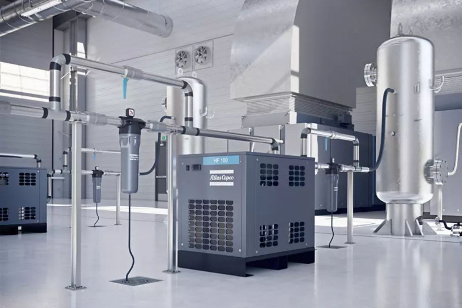 A compressor is only part of the system. We also supply a full range of ancillary equipment to build a total solution, including air dryers (refrigerant and desiccant), filtration, and air receivers.